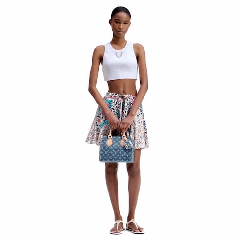 Agrémenté d'une garniture en cuir de vache naturel, ce cabas OnTheGo PM symbolise le retour du denim Monogram emblématique de la Maison. Il se pare de détails métalliques dorés et d'une fermeture à rabat magnétique. Pensé pour accueillir une tablette entre autres indispensables du quotidien, il se porte à la main ou croisé grâce à la bandoulière amovible.