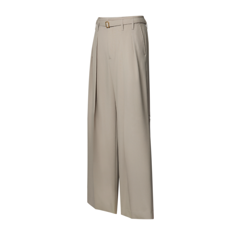Ce pantalon à ceinture, confectionné en laine fine issue de sources responsables et décliné dans une teinte beige classique, incarne l’élégance naturelle du défilé Printemps-Été 2026. La coupe décontractée et l'avant à plis dessinent une silhouette fluide, tandis qu’une broderie Louis Vuitton Paris ton sur ton appose une signature discrète au-dessus d’une poche arrière. Ce modèle incontournable complète les looks intemporels de cette saison.
