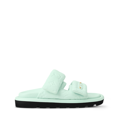 Named for its cushiony, padded upper, the Pool Pillow comfort mule is reinterpreted in calf leather, which is debossed with the Monogram pattern. The front strap is embellished with a leather label bearing the Louis Vuitton signature. This easy-to-wear style is finished with a comfortable anatomic footbed and a lightweight micro outsole.