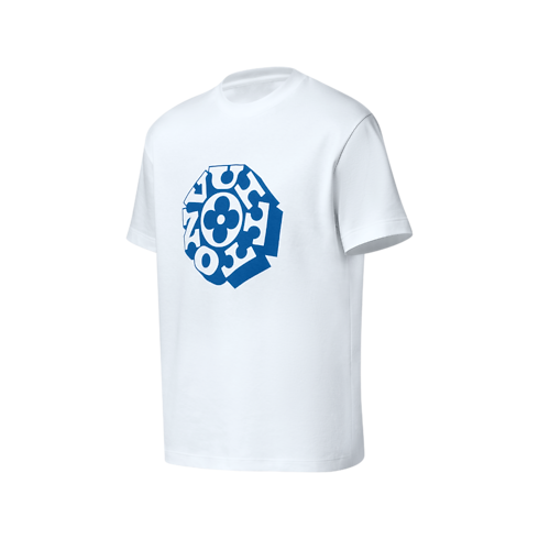 Issu du défilé Automne-Hiver 2025, ce tee-shirt graphique est confectionné dans un mélange brillant de coton et de soie et confère un charme estival somptueux à toutes les tenues décontractées. Le coloris blanc lait s'agrémente d'un motif fleur de Monogram au niveau de la poitrine et d'une inscription Vuitton au dos dans une nuance bleue audacieuse.