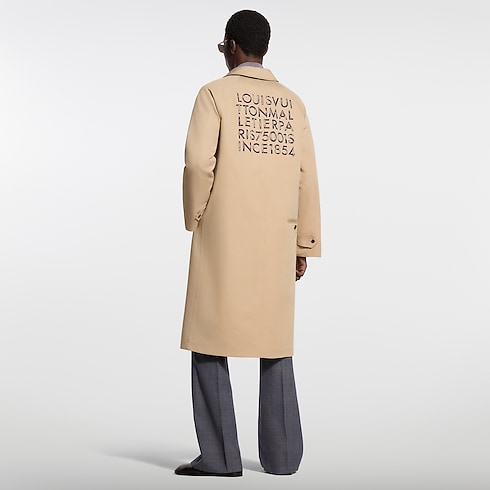 Ce trench réversible et léger en mélange de coton et de soie, se prête à une variété de styles. Sa face extérieure classique de couleur beige présente une allure sobre et raffinée, tandis que le dos s’illumine du lettrage LV Alphabet de la saison. Une fois inversé, il dévoile un motif jacquard prince-de-galles gris, sublimé par une signature brodée discrète sur la poitrine. Sa silhouette épurée s’intègre parfaitement à une garde-robe de mi-saison.