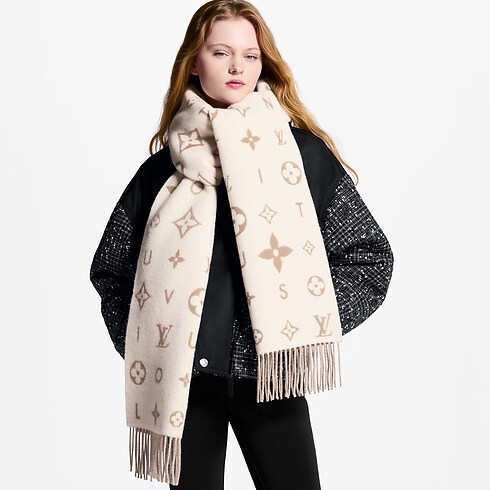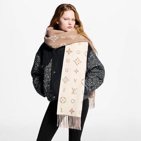 Cette écharpe élégante Reykjavik 2.0 offre une relecture contemporaine d'un accessoire classique Louis Vuitton. Confectionnée en cachemire doux, elle présente un motif original qui entremêle les fleurs de Monogram et les LV Initiales emblématiques aux lettres du nom de la Maison. La longueur oversize de cette pièce sophistiquée permet de la porter aisément autour du cou, ou à la manière d'une cagoule pour créer un style dans l'air du temps.