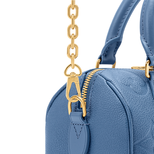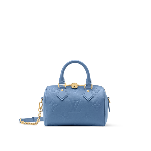 Cette édition du sac Speedy Bandoulière 20 emblématique se distingue par une élégante teinte Bleu Jean. Contemporain et raffiné, ce modèle en cuir Monogram Empreinte est rehaussé d’un cadenas doré accompagné de ses clés, en hommage à la tradition du voyage de la Maison. Doté d'un format idéal pour accueillir les indispensables du quotidien, il se porte croisé, à l’épaule ou à la main.