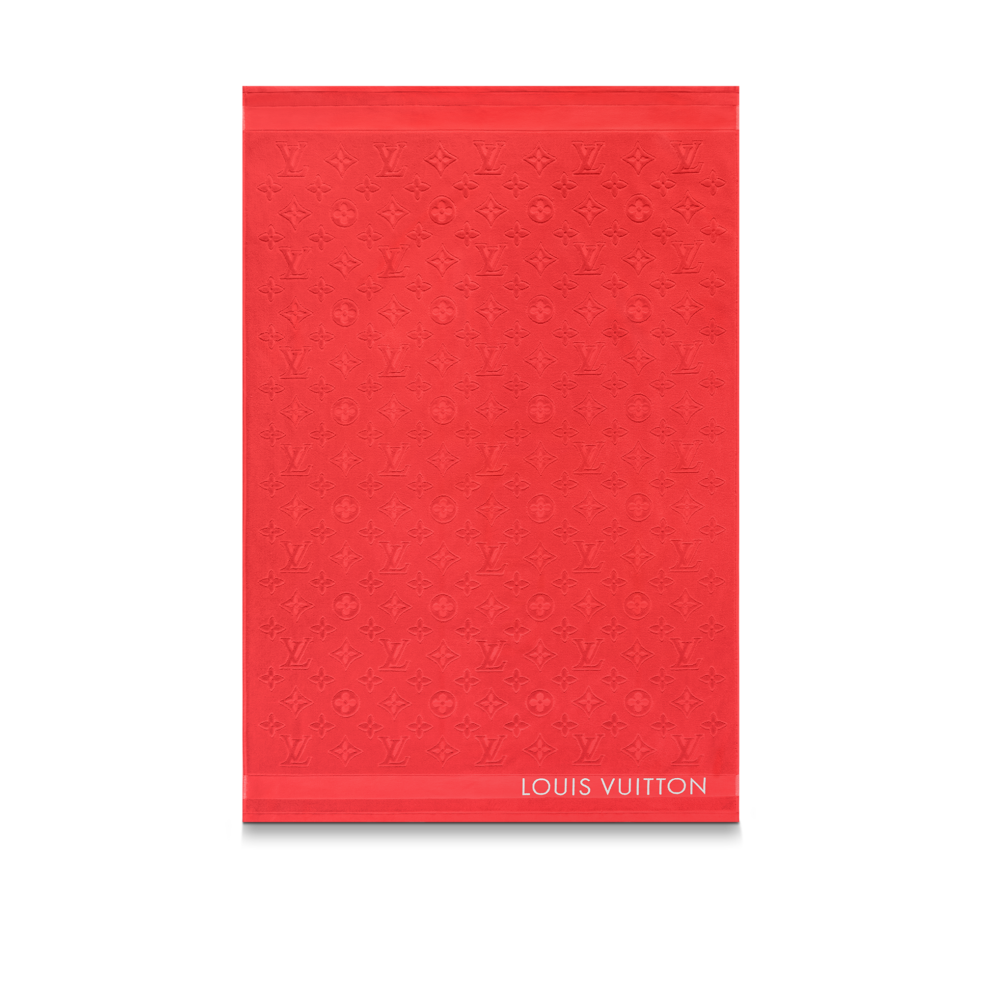 Le style intemporel de la Maison se retrouve jusqu'au bord de l'eau ou de la piscine avec cette nouvelle serviette de plage LVacation. Le motif Monogram emblématique est tissé dans du coton rouge coquelicot vitaminé avec un effet 3D ton sur ton, que vient souligner une signature Louis Vuitton en bas de la pièce. Cet accessoire doux et absorbant s'accorde à la perfection au coussin de plage LVacation.