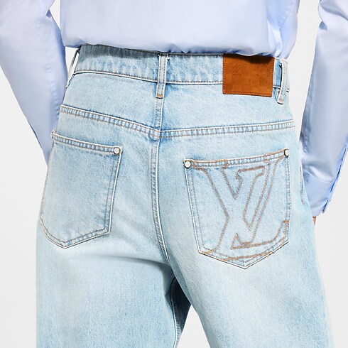 Indispensable du vestiaire masculin revisité avec le savoir-faire Louis Vuitton, ce pantalon droit est réalisé en denim japonais de qualité supérieure. Doté d’un coloris bleu clair intemporel et d’une silhouette décontractée, il s’adapte à toutes les tenues. Ce modèle s’orne de détails exclusifs comme des surpiqûres de couleur tabac, une broderie LV sur une poche arrière et des patchs en nubuck à la taille et sur la poche gousset, portant la signature de la Maison.