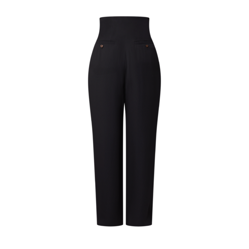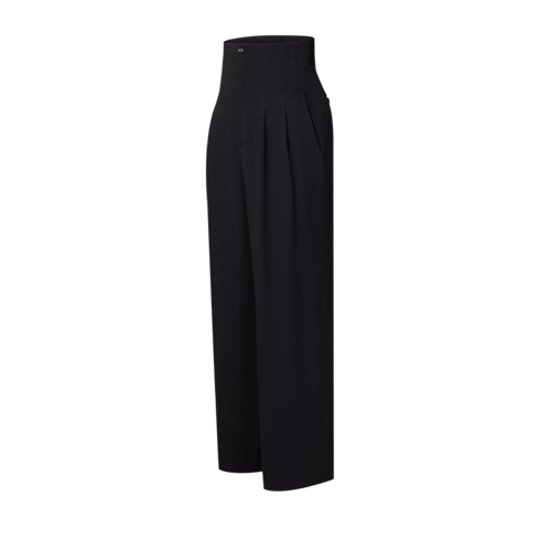 Ce pantalon s’inspire du tailoring contemporain pour offrir une silhouette élégante et affirmée. Confectionné en crêpe fluide de viscose mélangée, il présente une finition subtilement texturée. La taille haute oversize structure la silhouette, tandis que des plis à l’avant des jambes apportent du volume. Les poches arrière sont agrémentées de boutons en toile Monogram.