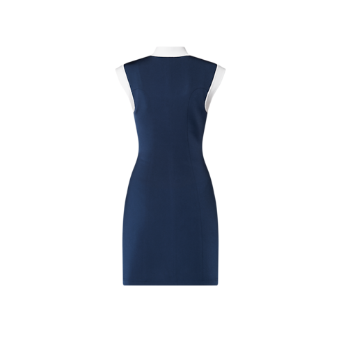 Cette robe chic et sportive est confectionnée en jersey technique lisse près du corps avec des coutures princesse aux accents féminins. Un effet color-block agrémente le col montant, les mancherons et la patte de boutonnage pour créer une allure graphique à l'esprit marin. Le bouton-pression supérieur se pare d'une ancre discrète issue de la collection Nautique.