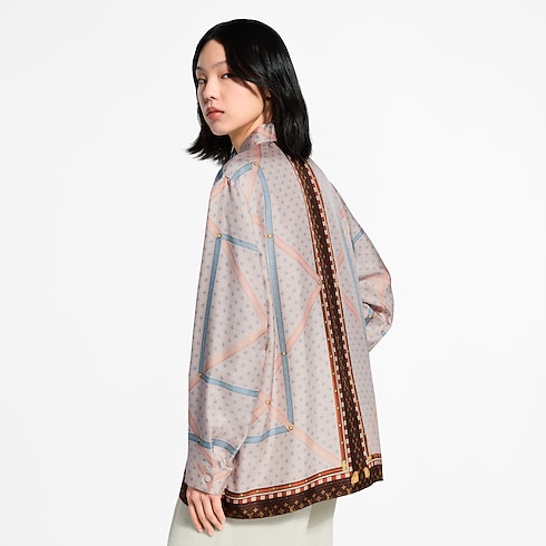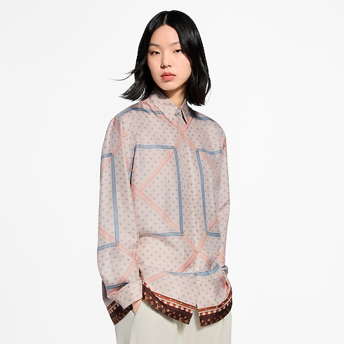 En hommage à l'esprit du voyage cher à la Maison, cette chemise graphique remarquable se pare d'un imprimé illustrant l’intérieur d'une ancienne malle Louis Vuitton. Confectionnée dans un twill de soie doux et léger, elle adopte une coupe droite et fluide qui lui confère une allure élégante. Un col raffiné et des poignets boutonnés agrémentent l'ensemble d'une note chic intemporelle.