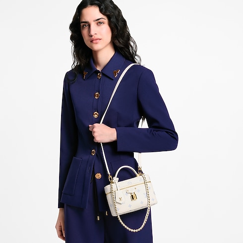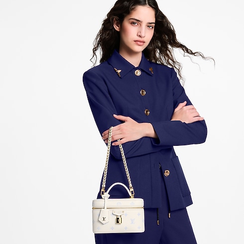 Inspirée des malles d’archives de Louis Vuitton, cette pochette chaîne Vanity incarne l’esprit du voyage cher à la Maison. Confectionnée en cuir Monogram Empreinte emblématique décliné dans une élégante palette bicolore, elle se distingue par un cadenas gravé d'une signature LV. Son design fonctionnel comprend une bandoulière amovible ainsi qu’une chaîne. Son format permet d’y glisser ses indispensables, tels qu’un petit porte-monnaie et des lunettes de soleil.