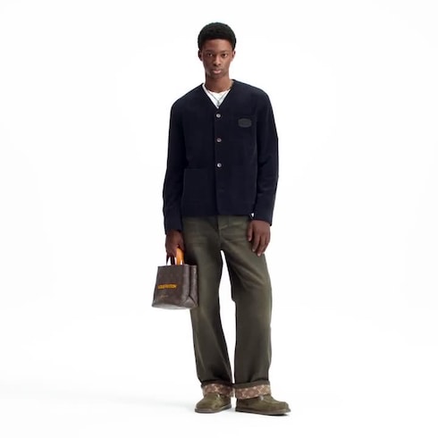 Jaket elegan ini dirancang dari material corduroy bernuansa biru gelap yang terinspirasi oleh keindahan pedesaan Inggris. Jaket tanpa kerah ini memadukan gaya workwear dan detail saku patch yang berkesan modern namun tetap klasik. Patch signature berbahan kulit berwarna hitam dihiasi motif khas Rumah Mode memperindah bagian saku dada, punggung, dan siku. Jaket elegan ini memberikan sentuhan warna yang halus dan tekstur beludru pada tampilan sehari-hari.