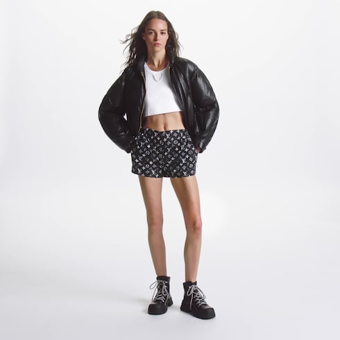 Celana pendek kasual ini menggabungkan kesan sporty dengan signature musiman Louis Vuitton. Dibuat dari bahan technical fabric, busana ini dihiasi dengan efek stencil dari motif Monogram di koleksi ini. Detail termasuk pinggang elastis, tutup kait, serta dua saku beritsleting di bagian samping.